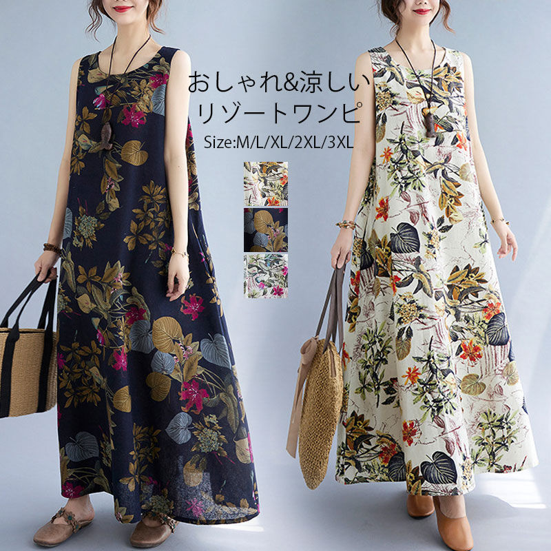 花柄ワンピース ロング丈ド...