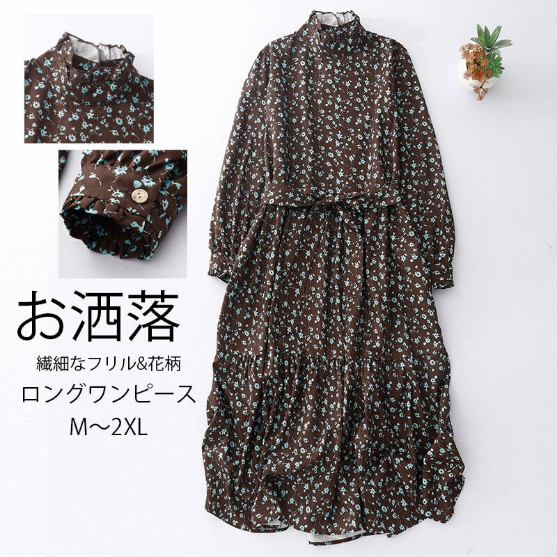 花柄 ワンピース ロング 長袖...