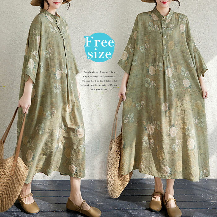 バンドカラー ワンピース 花...