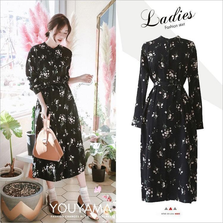 花柄 ワンピース 長袖 偽二枚...