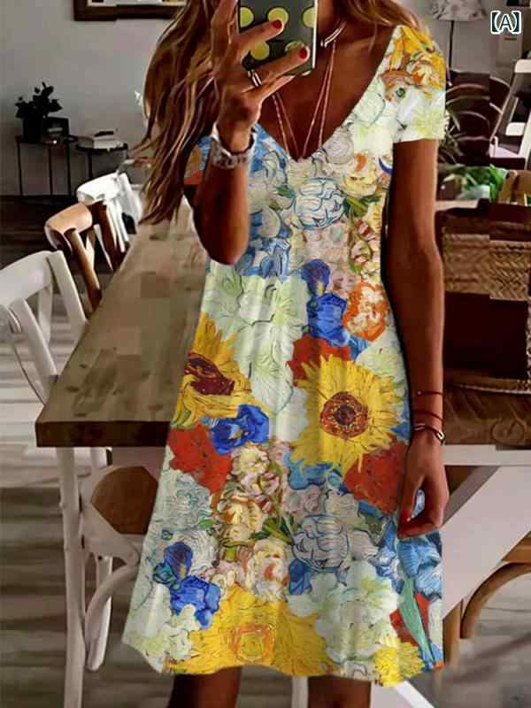 Allegra K 花柄ワンピース タ...
