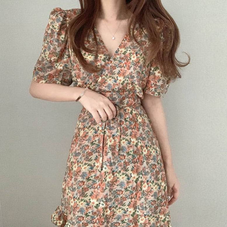 - 花柄ワンピース