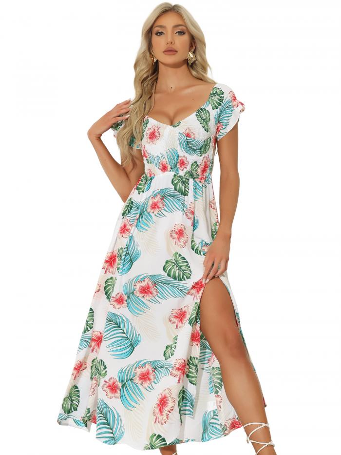 Allegra K aライン花柄ワンピ...