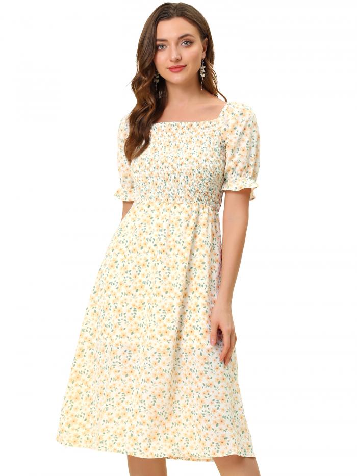 Allegra K 花柄ワンピース a...
