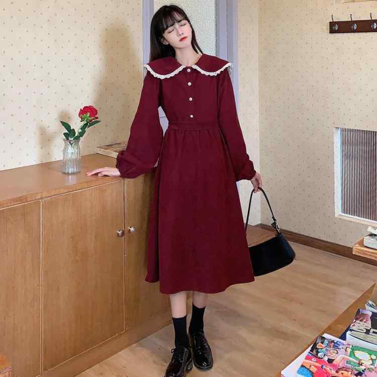 Aラインワンピース 赤 森ガー...