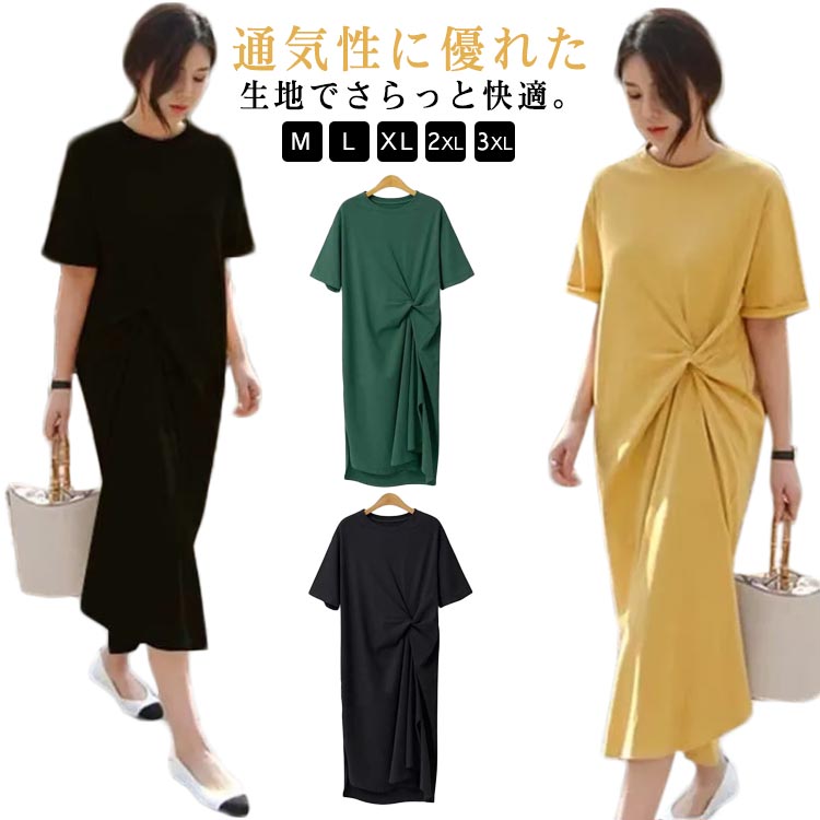 マキシワンピース 無地 半袖 ...