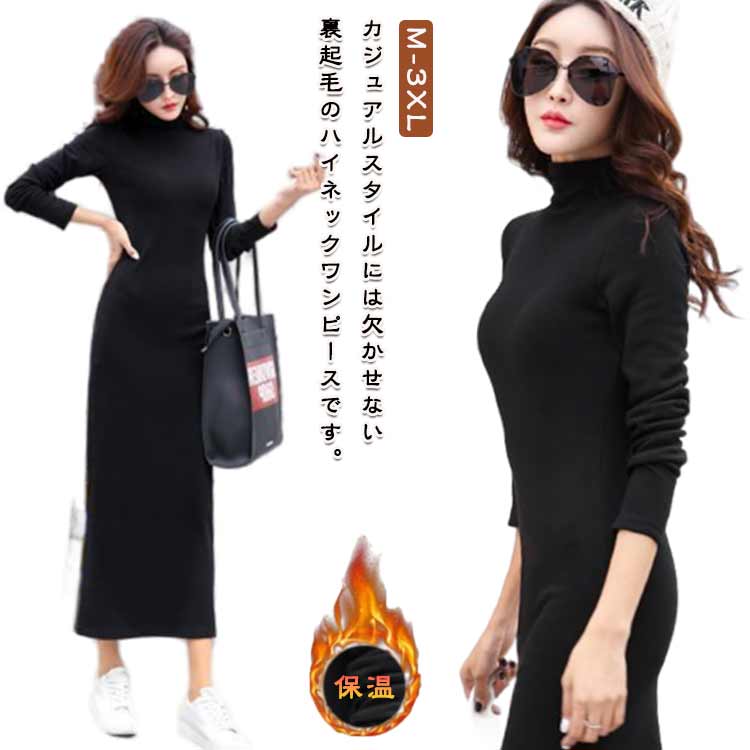 ハイネック 裏起毛 ワンピー...