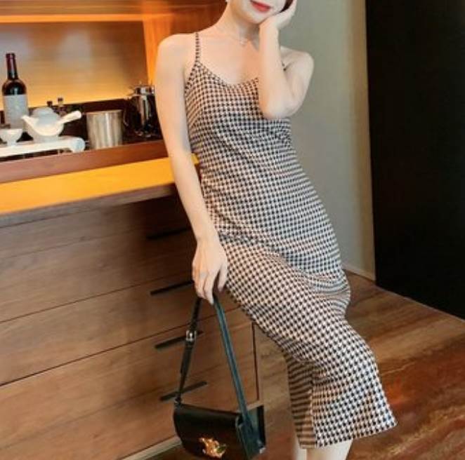 ロングワンピース チェック柄...