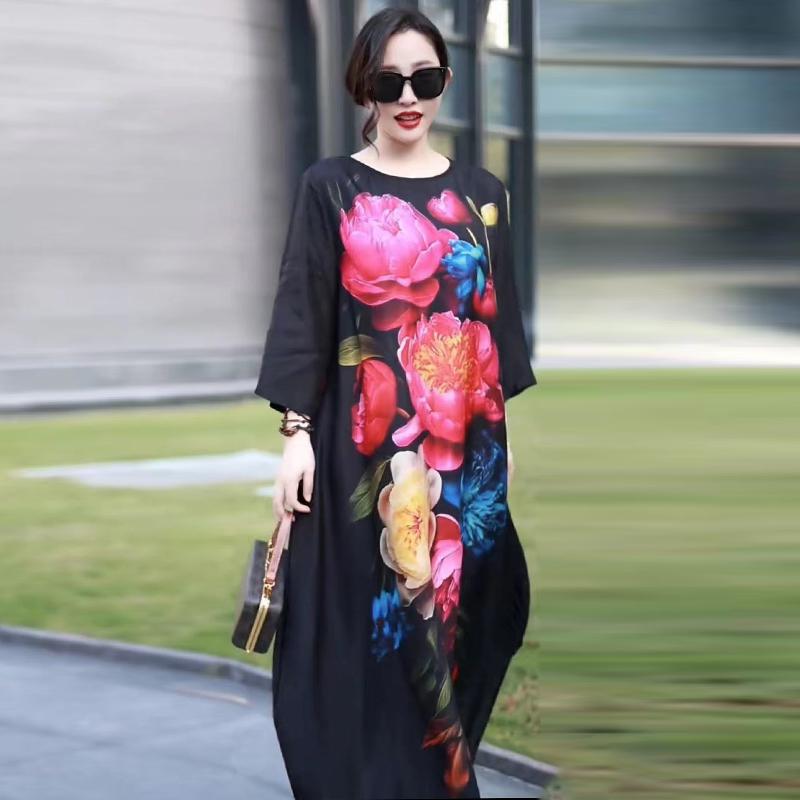 ロングワンピース プリント...