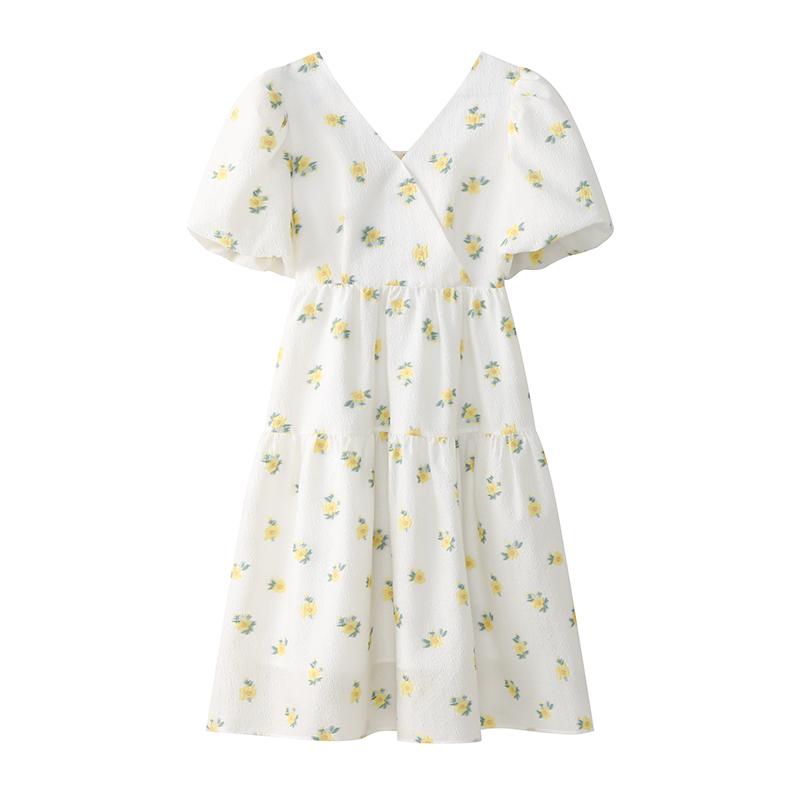 ワンピース 半袖 小花 ジャカ...