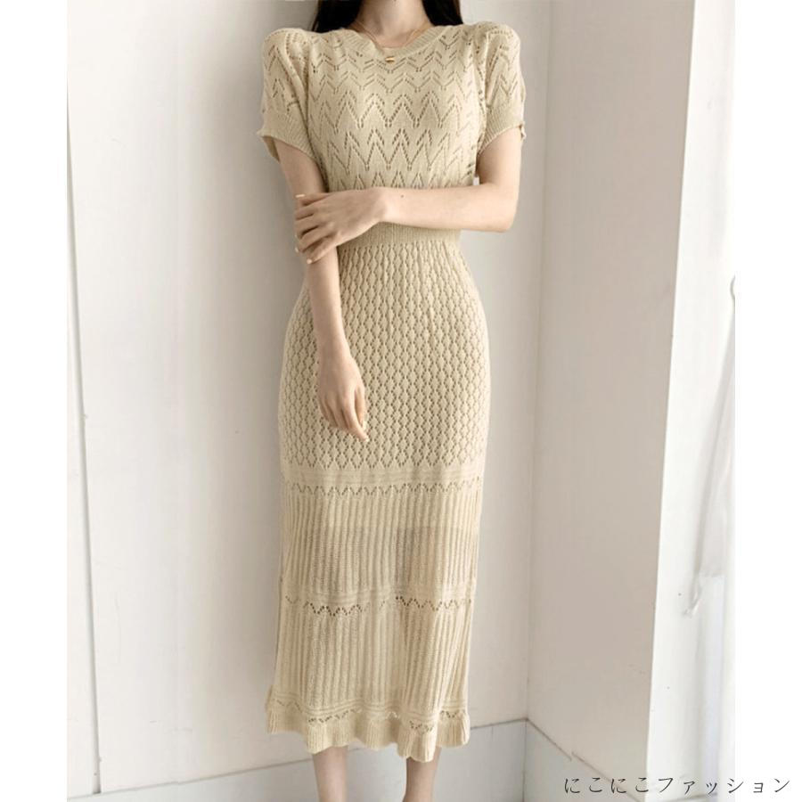 透かし編みニットワンピース2...