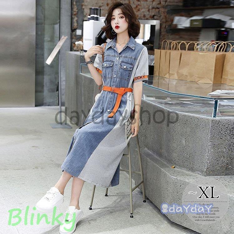 ワンピース 春夏 半袖 デニム...