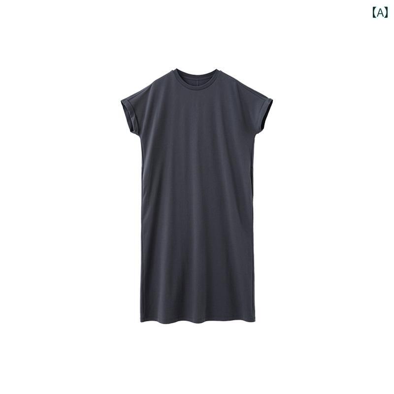 マキシワンピース 無地 半袖 ...