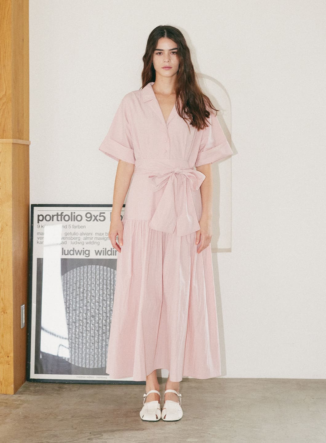 ウエストリボンシャツワンピ...