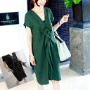 ワンピース 膝丈 7分袖 Vネッ...