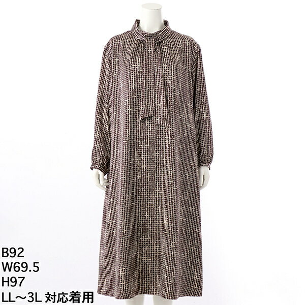 ボータイ付きプリントワンピ...