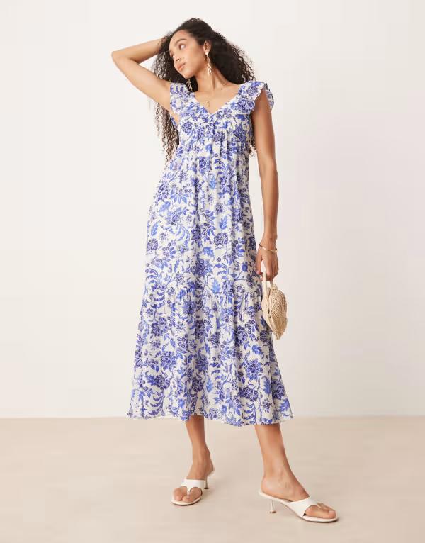 Vネック花柄デザインワンピー...