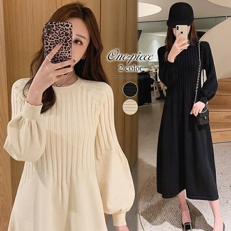 パフスリーブニットワンピー...