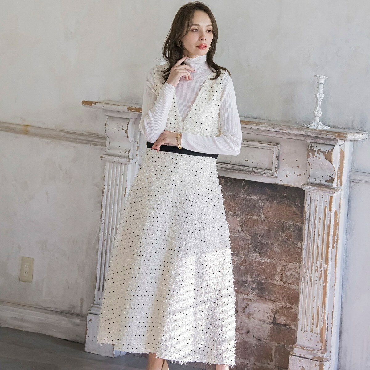 リボンドットツイードワンピ...
